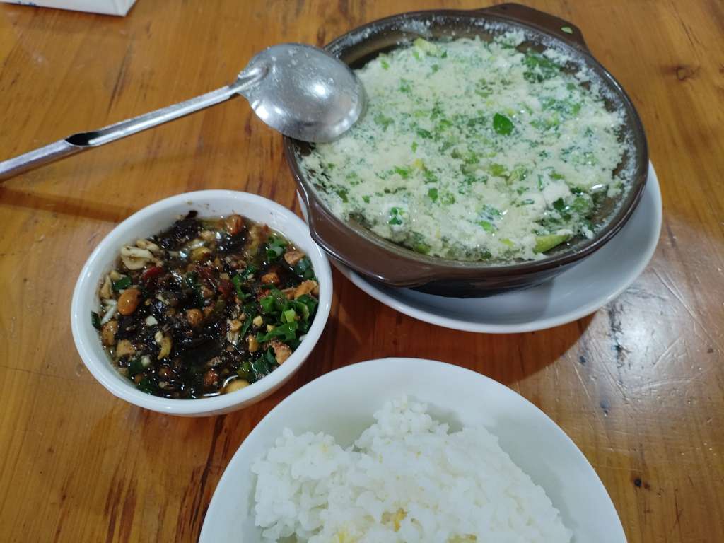 中午懒得做饭,简单的吃个豆花饭。便宜实惠。豆花最经饿。要是不怎么运动的话。中午吃了豆花,晚上都可以不吃饭了。今天这个菜豆花是用的白菜。其实我最喜欢的还是用南瓜丝丝。