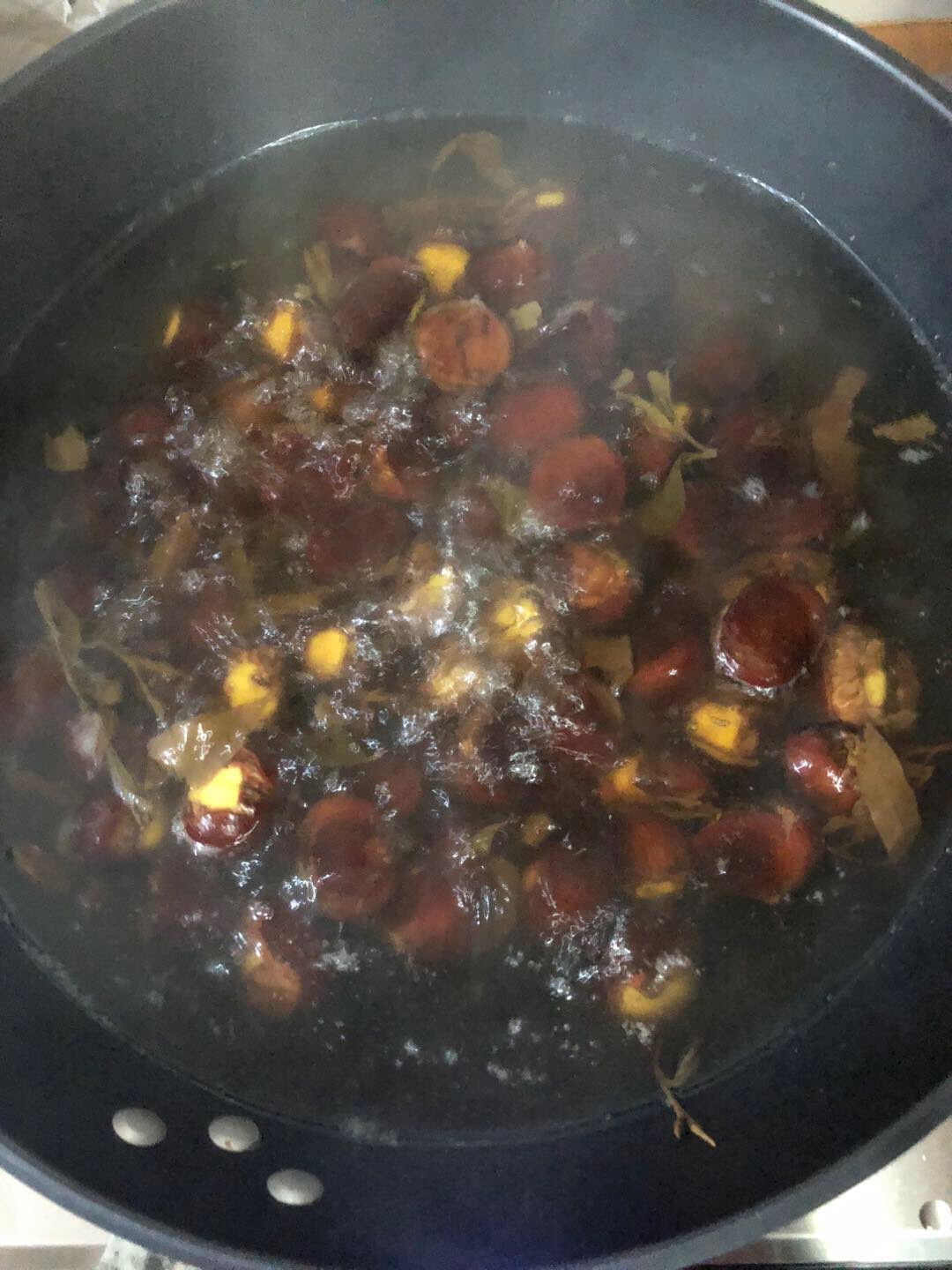 先划口,再用茶叶水煮两分钟,然后剥皮装好放急冻室,据说可以延长保存时间,看能管多久。