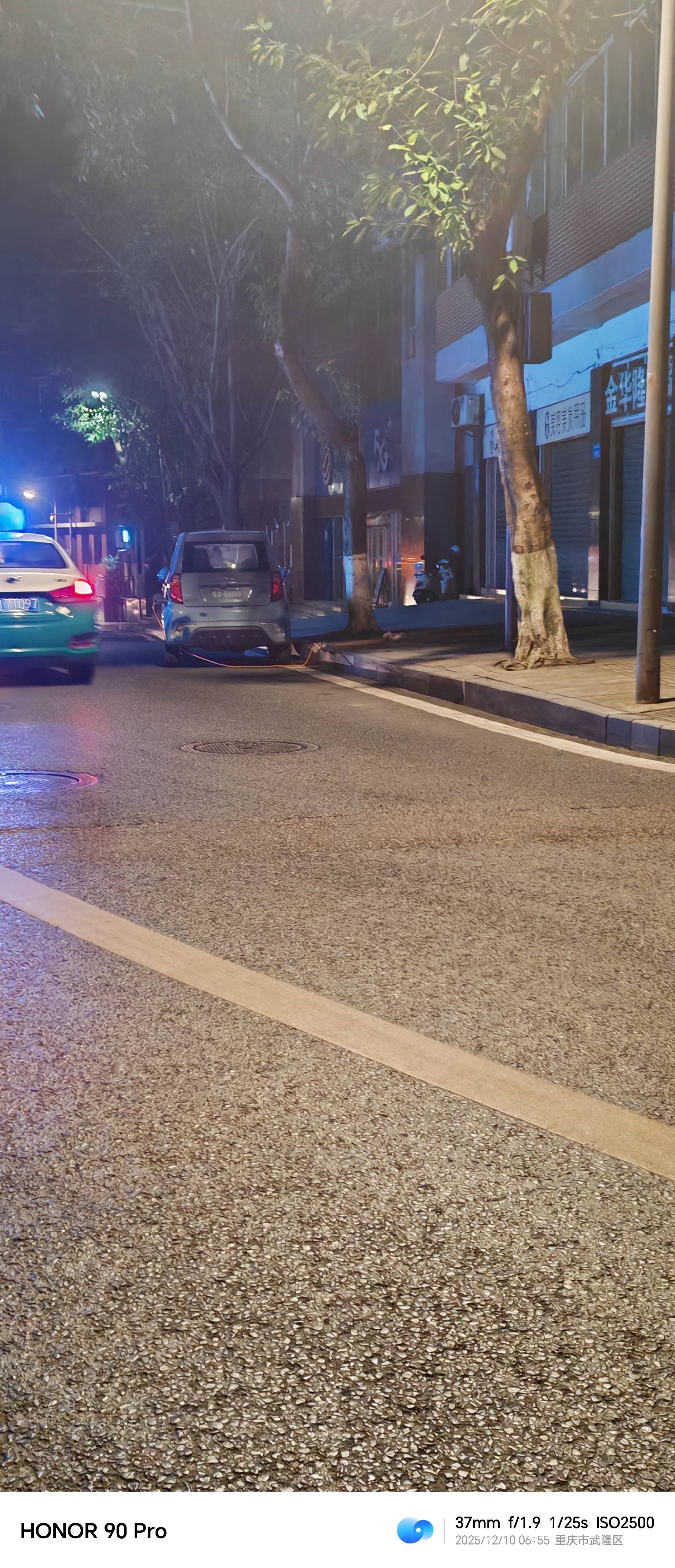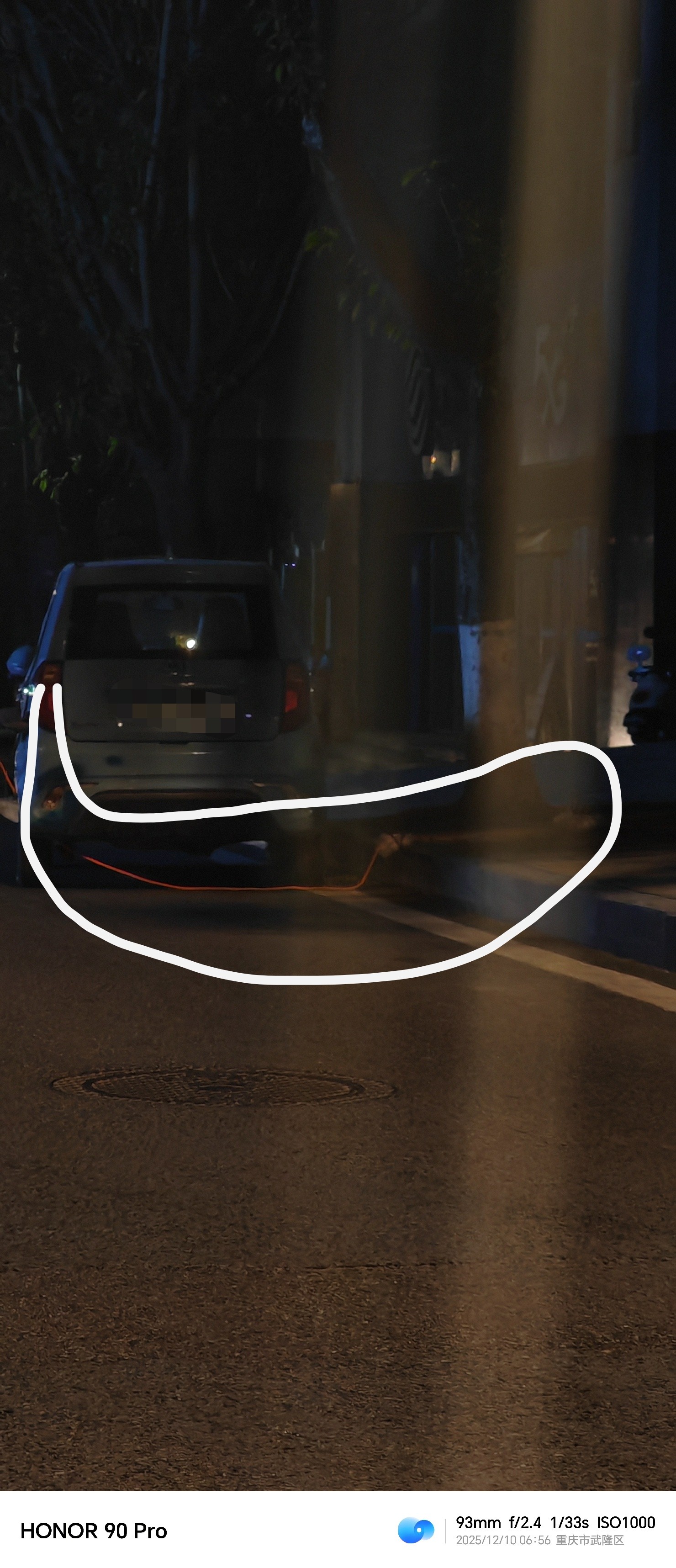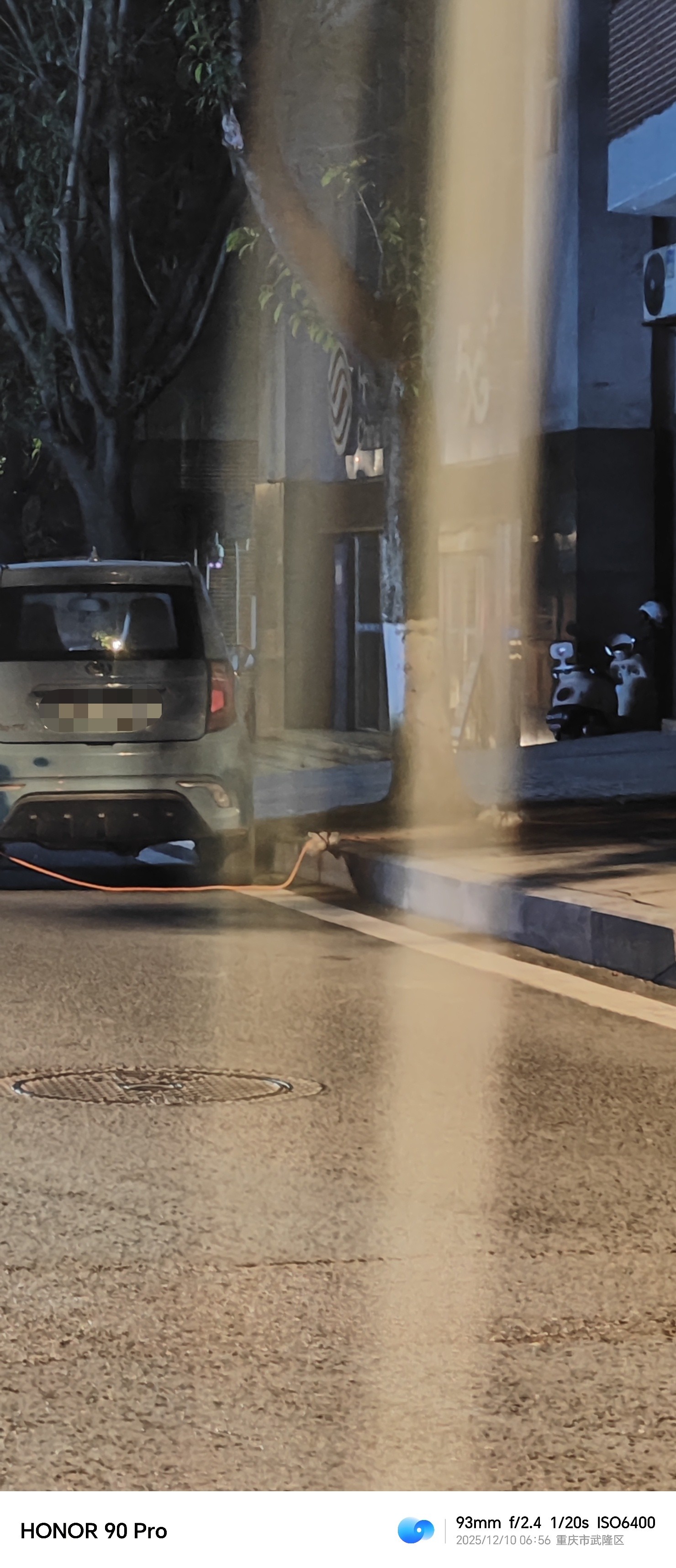 安全隐患:1.在转弯处违章停车严重影响其他车辆正常通行,2.飞线充电对其他路人造成触电安全隐患,