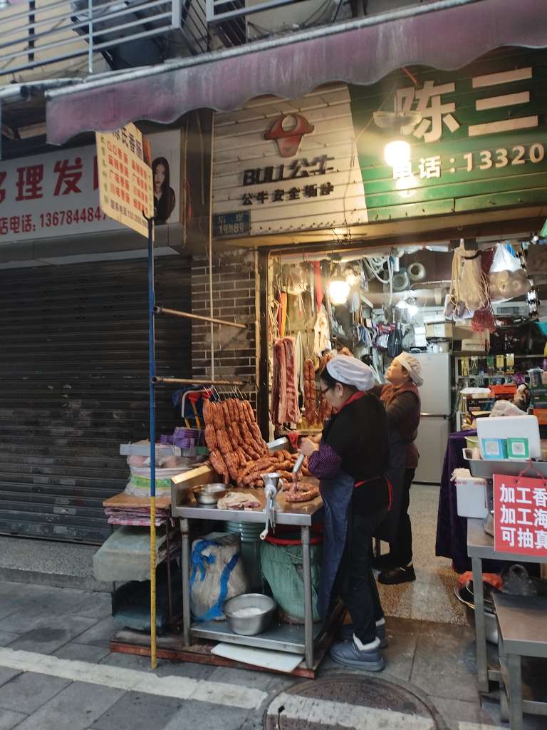 这些人搞得快,才立冬就在灌香肠了。可能灌来先吃着。吃完了,冬至过了再灌。以前香肠找别人做,很容易调包,最怕不良商家。不知道现在这种不良商家还多不?