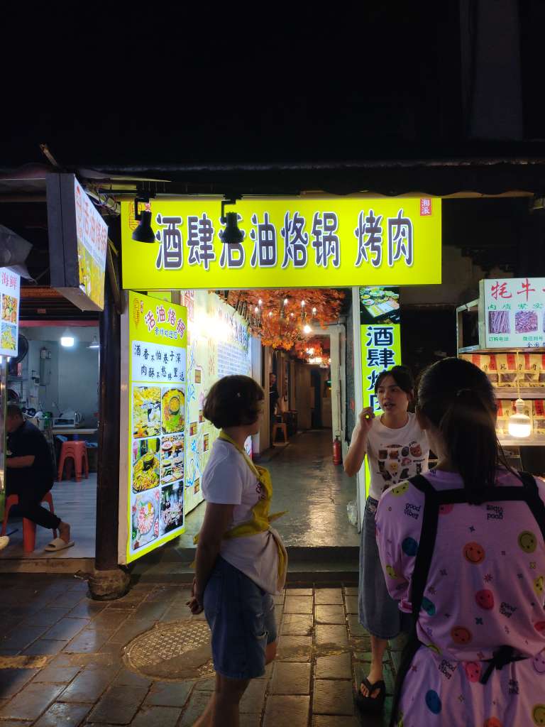 里面开烙锅的还有几家,生意不是很好。老板在路边拉客