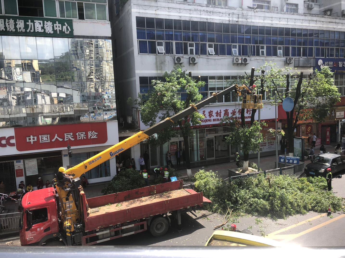 上次下大雨刮大风的时候树枝都会掉在公路上,这次修剪之后安全得多。