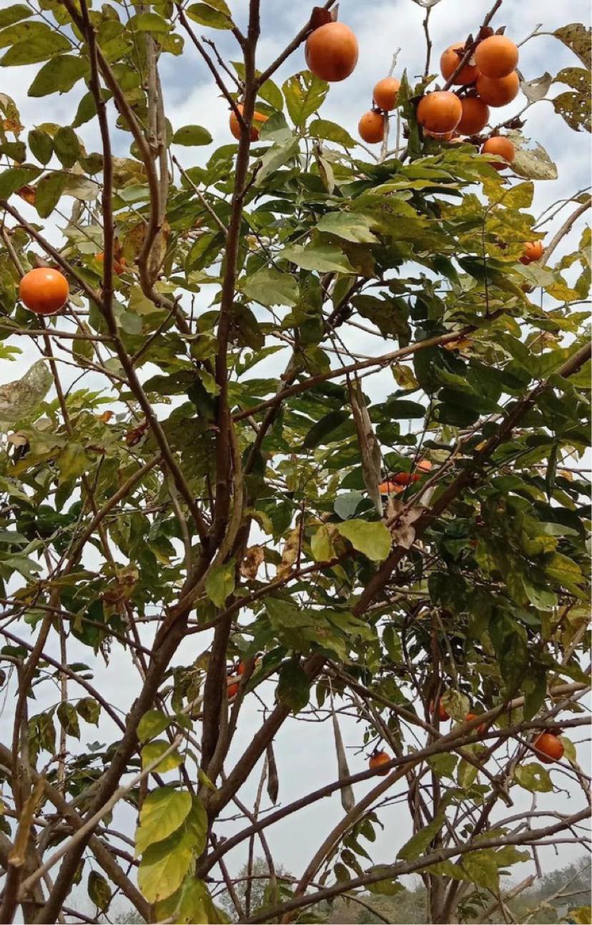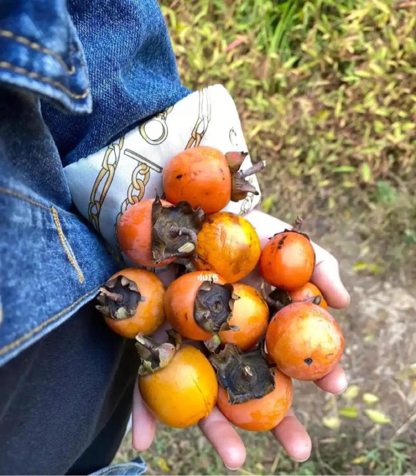 秋天山上,野核桃,野板栗,今天还偶遇了一颗野柿子树,枝头挂满橙红柿子,像大自然撒落的糖果一样。不晓得吃不吃得。