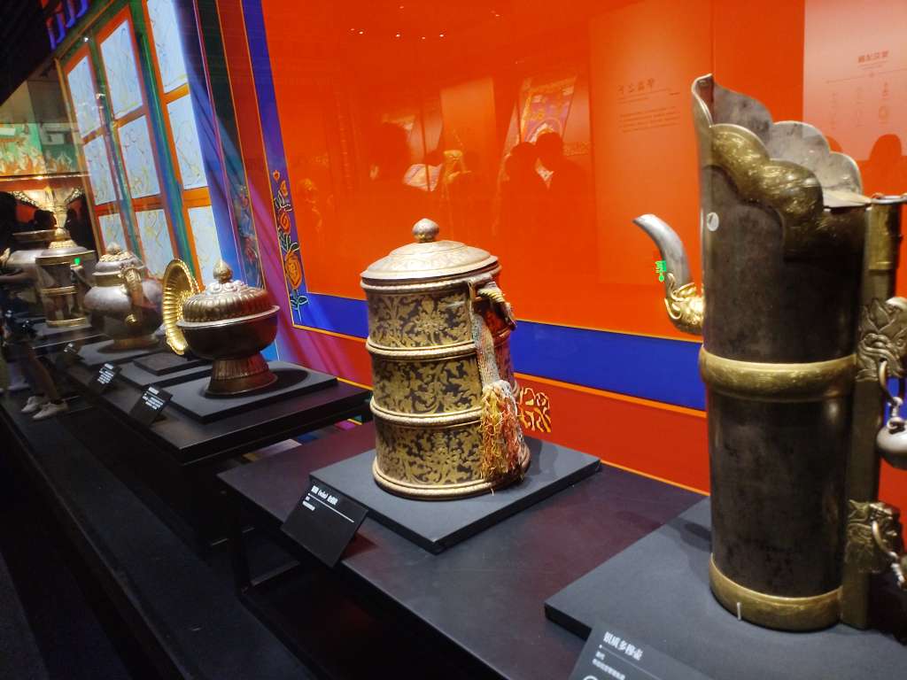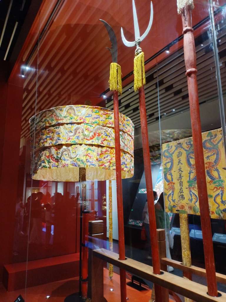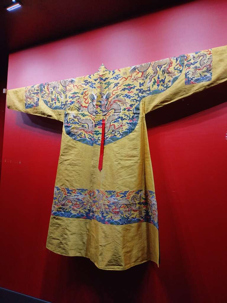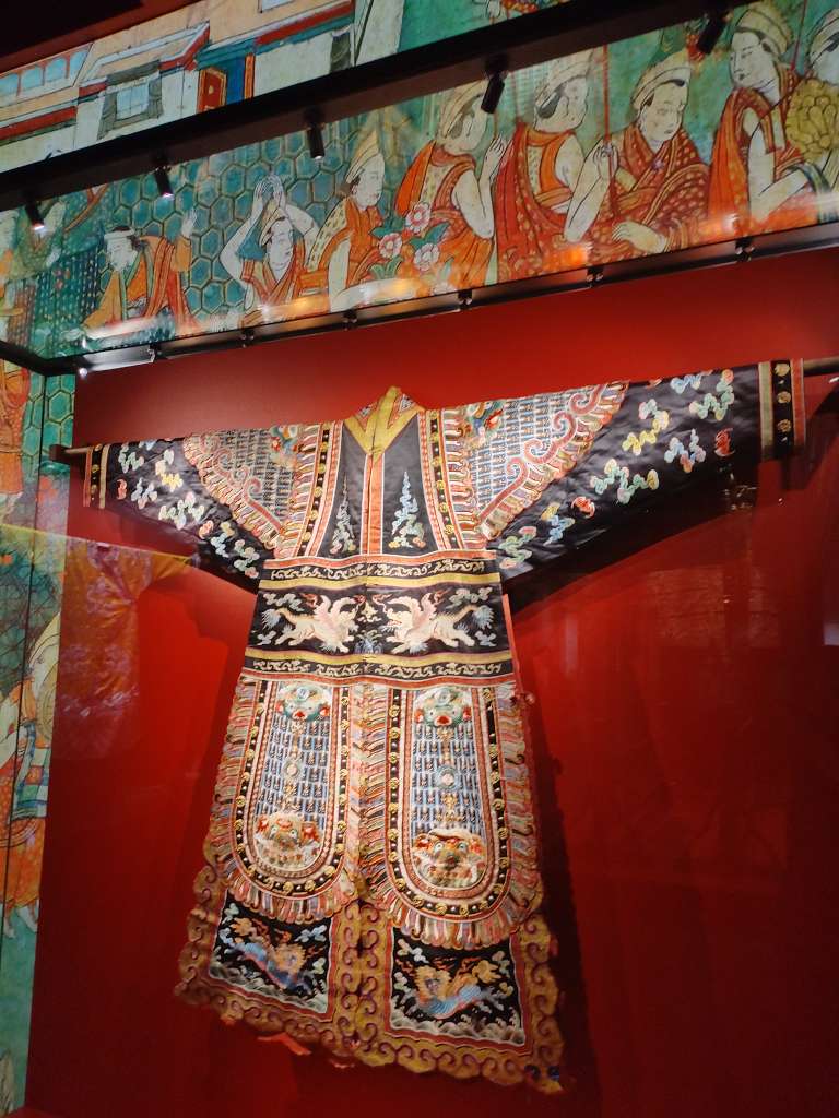 参观布达拉宫展馆。这些都是展览的精品。确实代表了西藏文化的最高造诣。平时在电视上看的,跟现实看见的,完全不一样。据展览说明,这些都是清皇帝赐给达赖的 ,刺绣看起真的精美。可能黄袍也差不多吧!但感觉这些衣服,很大。古人很高吗?
