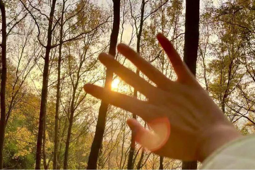 静静地坐在蓝天下,阳光暖暖地照在身上,让人睁不开眼睛,给了我温暖,给了我力量