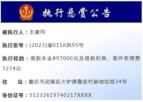 1.凡提供被执行人王建均可供执行的财产线索,并使人民法院执行到位的,按执行到位标的的10%给予奖励。被执行人已被发现但未处分的财产不属于悬赏范围。
