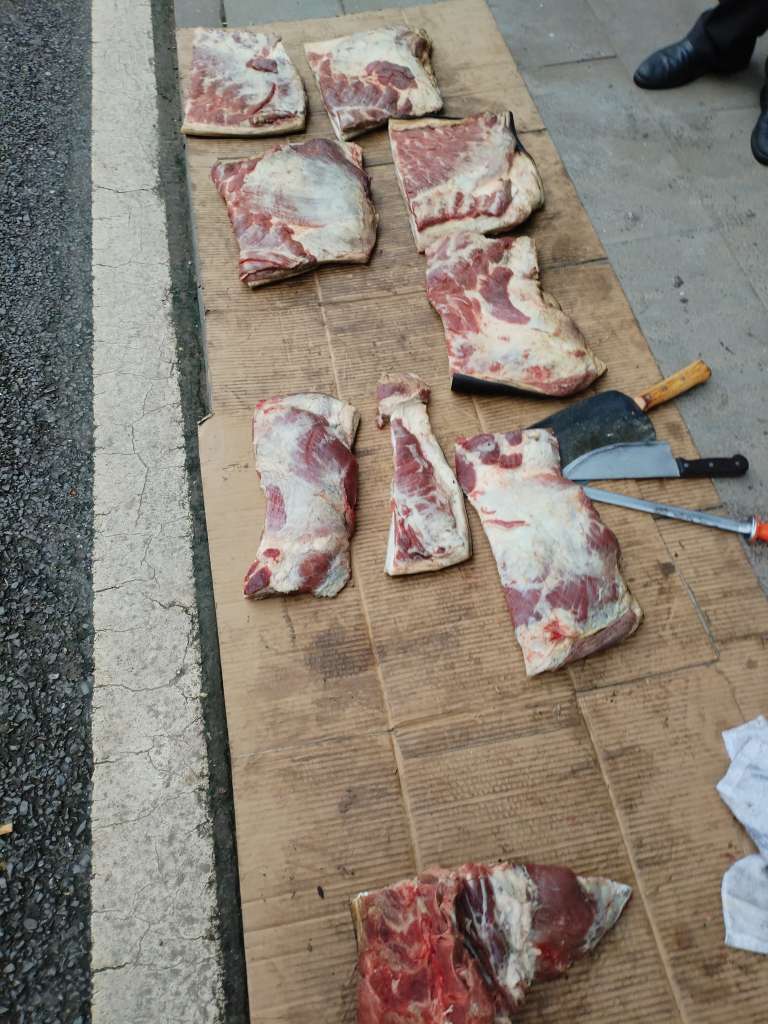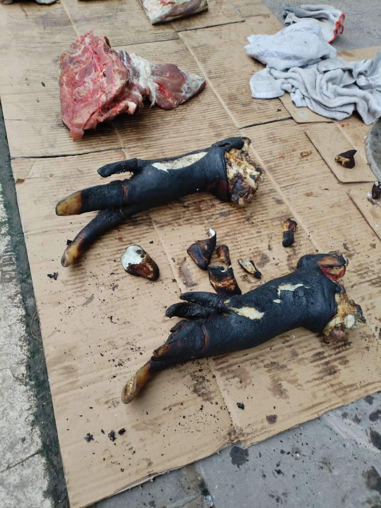 场上看见地摊上在卖肉。它这个应该是野猪肉。以前我见过的,野猪肉膘薄些,猪脚完全跟家猪不一样。但是没有追问老板是怎么弄到的。可能是掉水井淹死的。这个肉要用高压锅压,才煮耙。虽人多,可老板还是没卖完。可能人们对不知名的肉,还是持怀疑态度。