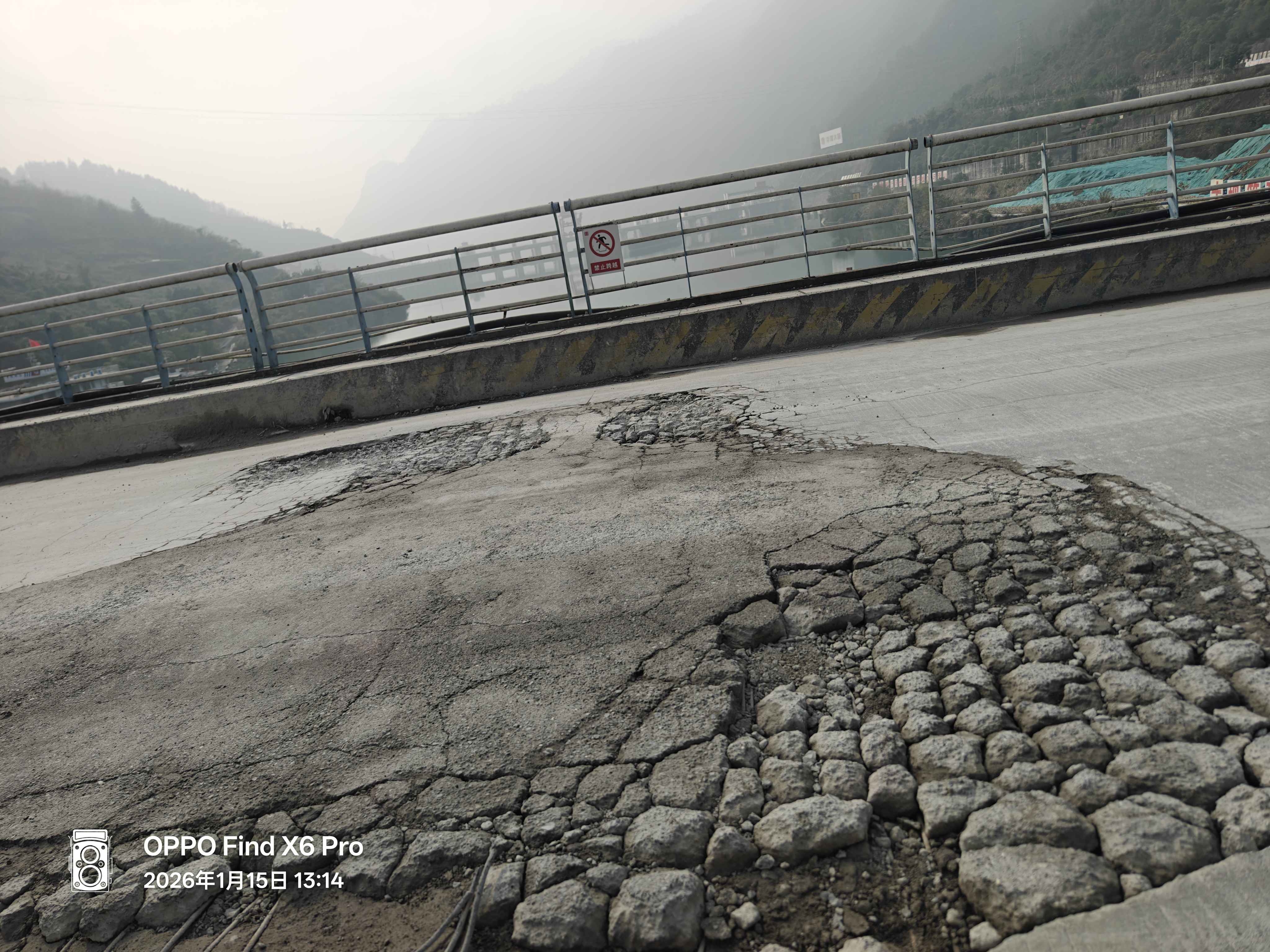 江口银盘电站大桥:烂成这样也没人管。