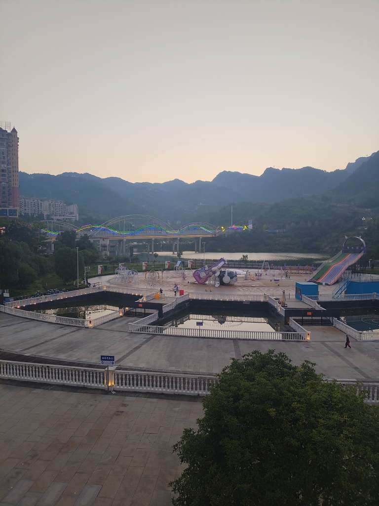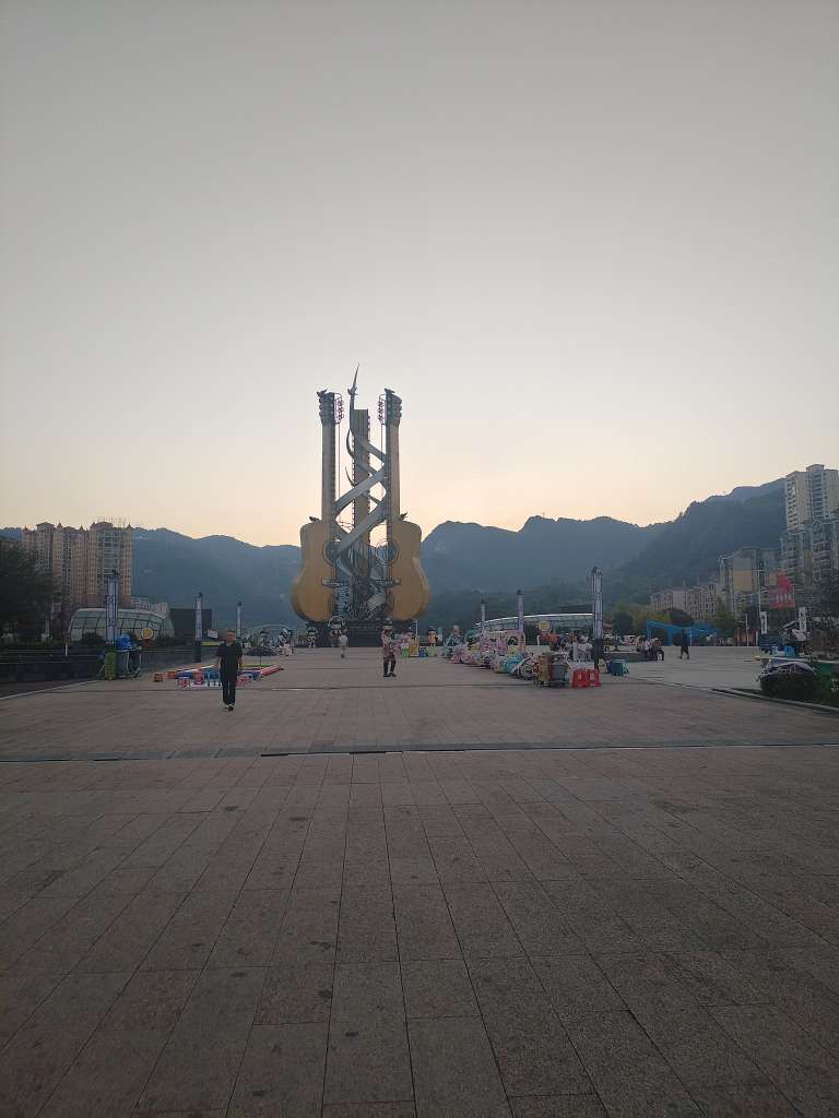 平时在抖音上经常看见有人在正安县的吉他广场直播。终于来到了实地。确实很多人在这里休闲玩耍,广场宽。活动开。比世纪广场稍大。标志性的吉他建筑