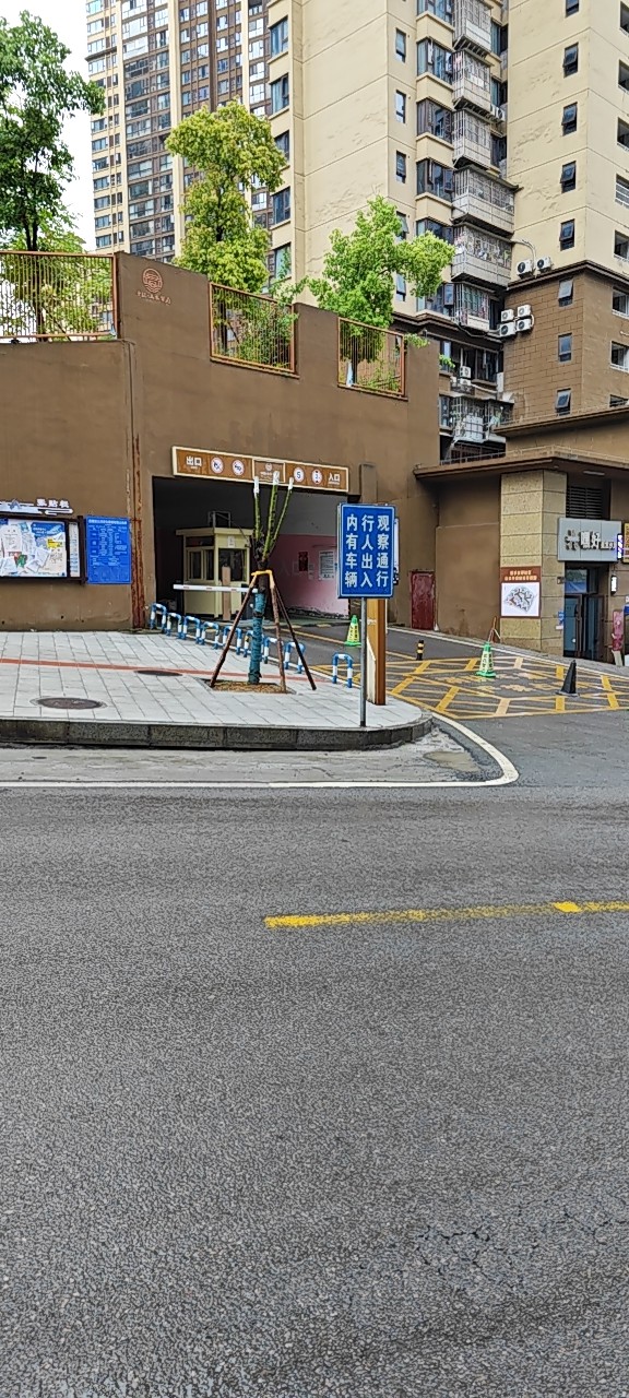标识牌装在人行道上,车库门口经常有行人出入,容易碰头,主要是我这个不到1米6的都能碰到。