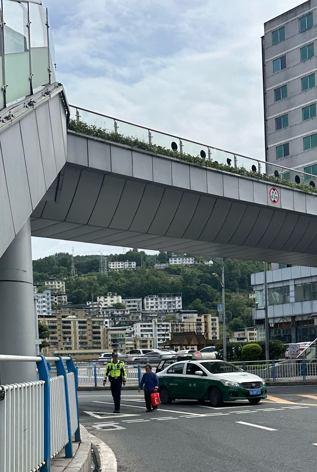 车流穿梭的都市广场转盘,武隆骁骑暖心守护,护送老奶奶安全过马路,但是可以提醒一下家里老人不要横穿马路