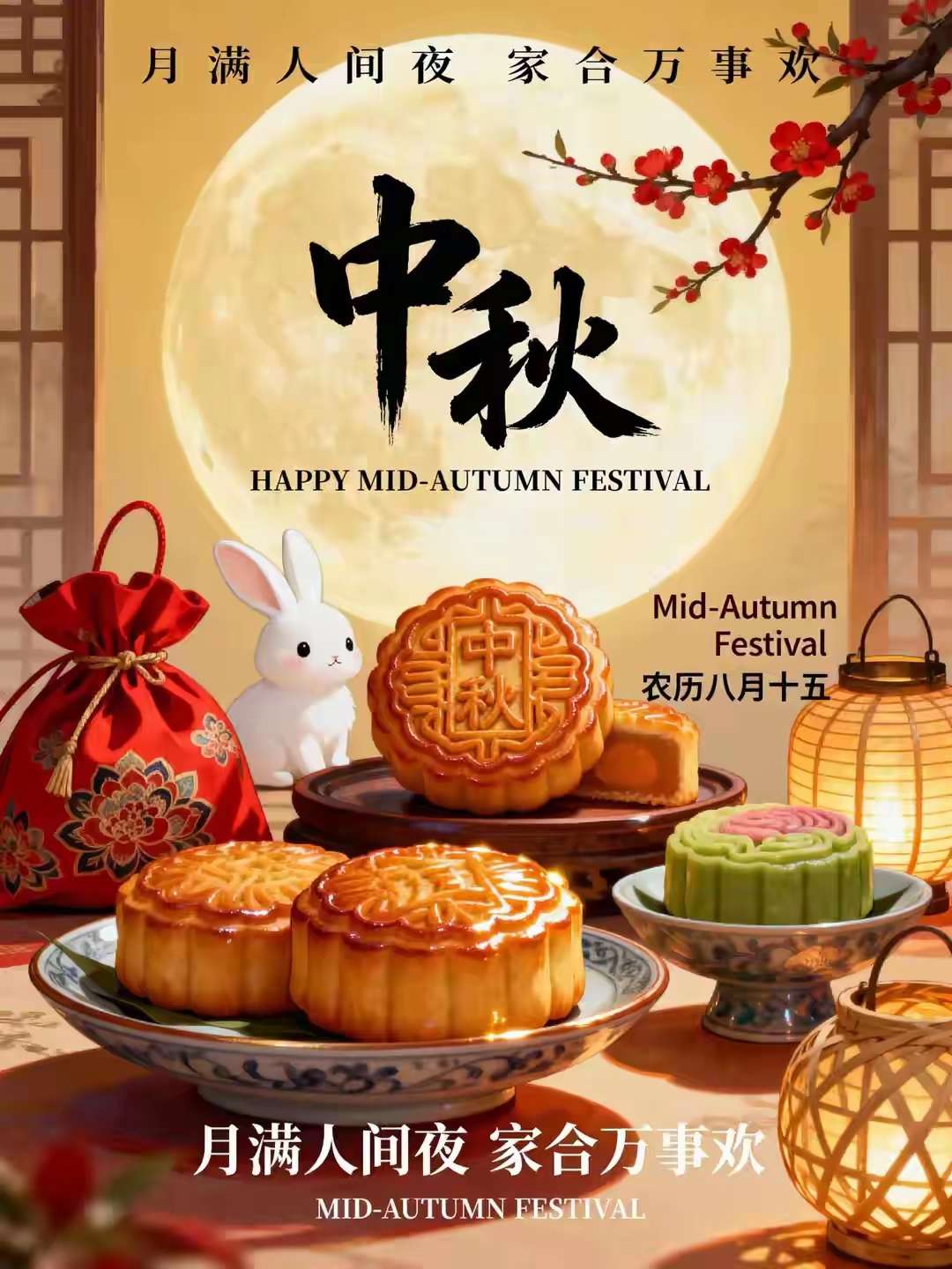 桂子香飘月满庭,中秋佳节聚亲朋。千家笑语欢颜驻,万户团圆绮梦兴。