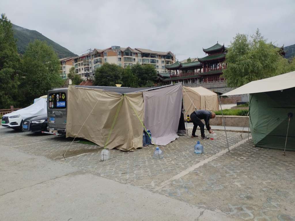 简易帐篷营地。这样比光帐篷好多了,有喷头