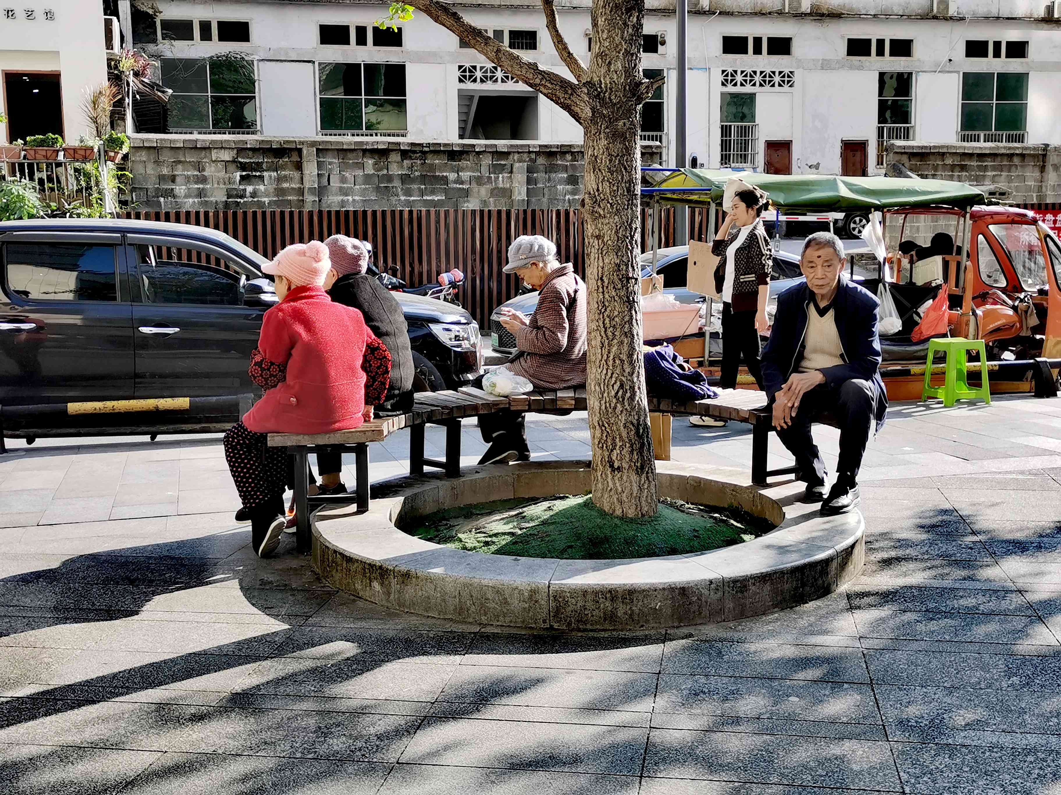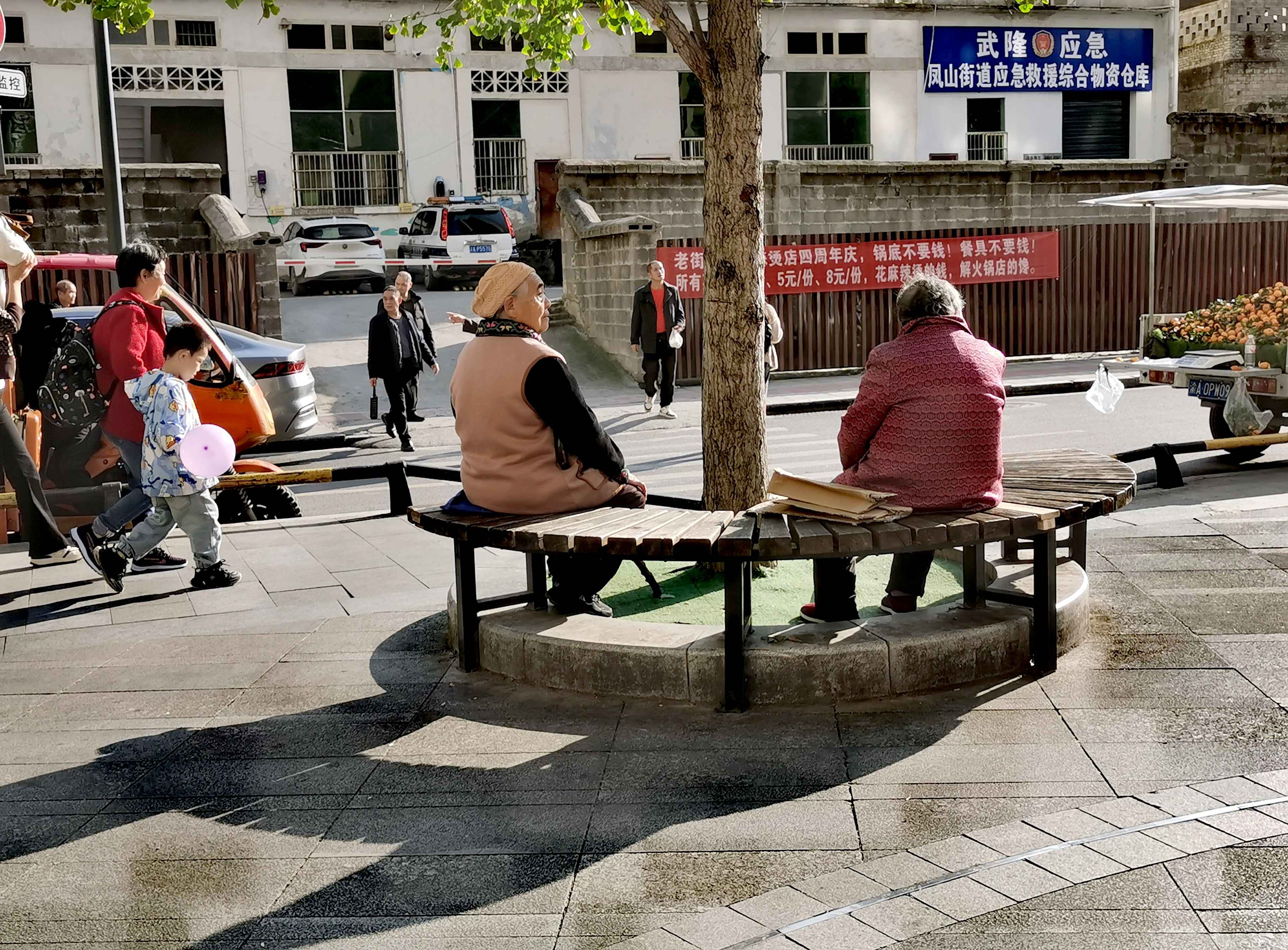 老街闲坐鬓霜皑。