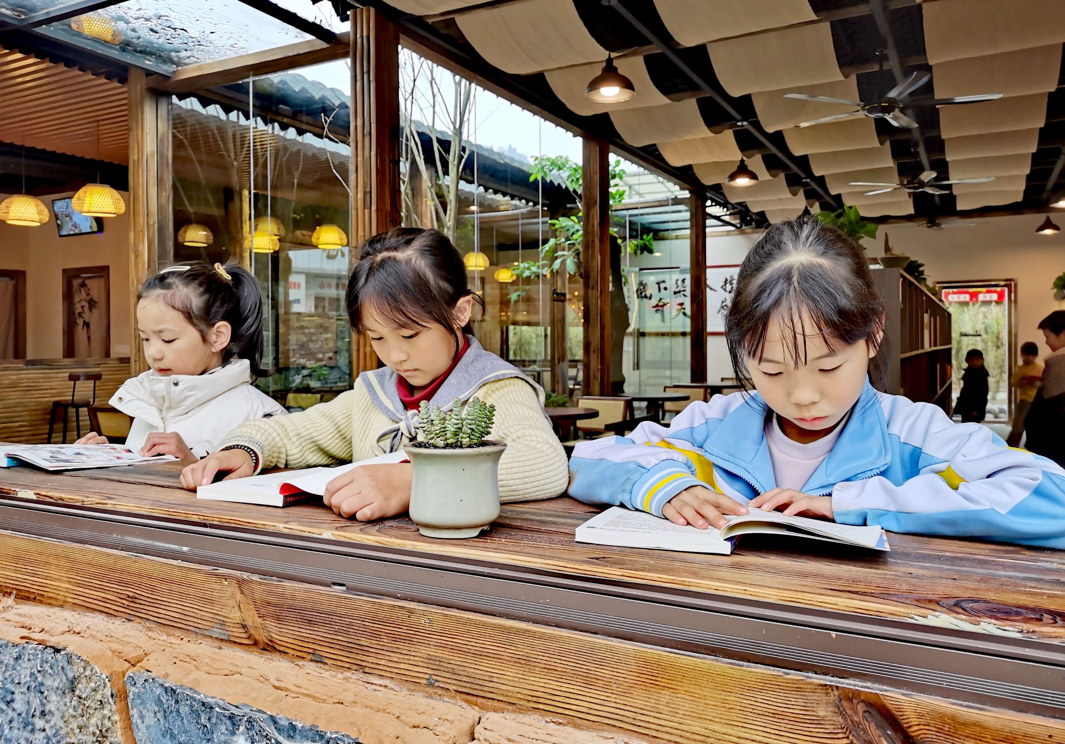 石墙茅顶嵌窗明,一缕茶香伴墨萦。