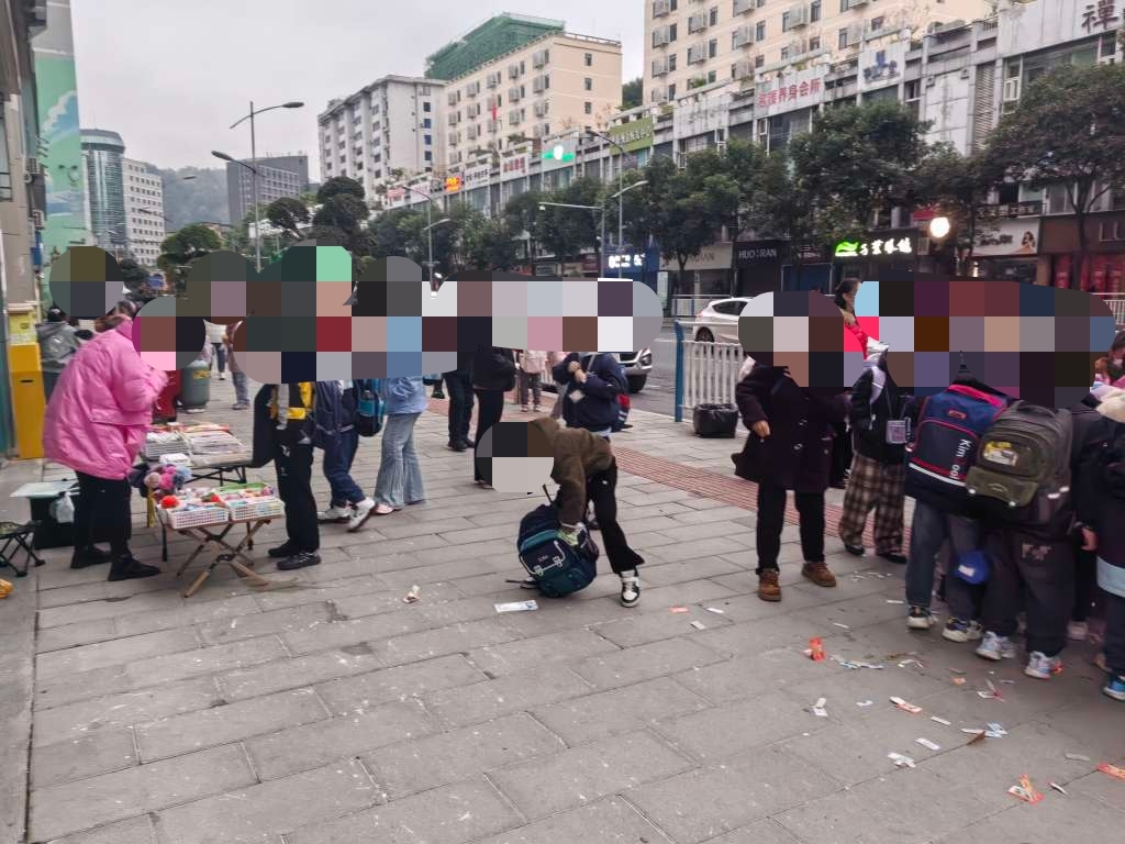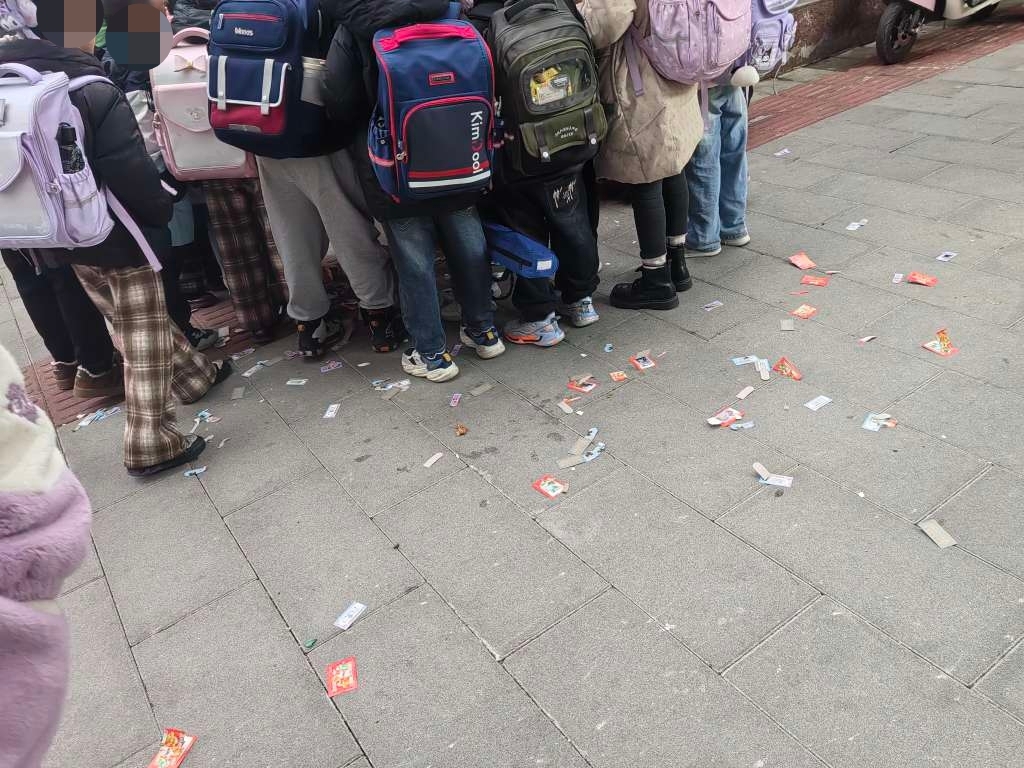 今天发现娃儿没买早餐,把钱拿去抽奖,花了10块钱,抽到个空气,啥子都没得到,还有娃儿在边边跪起求中奖。最后人走了,留了一地的垃圾。