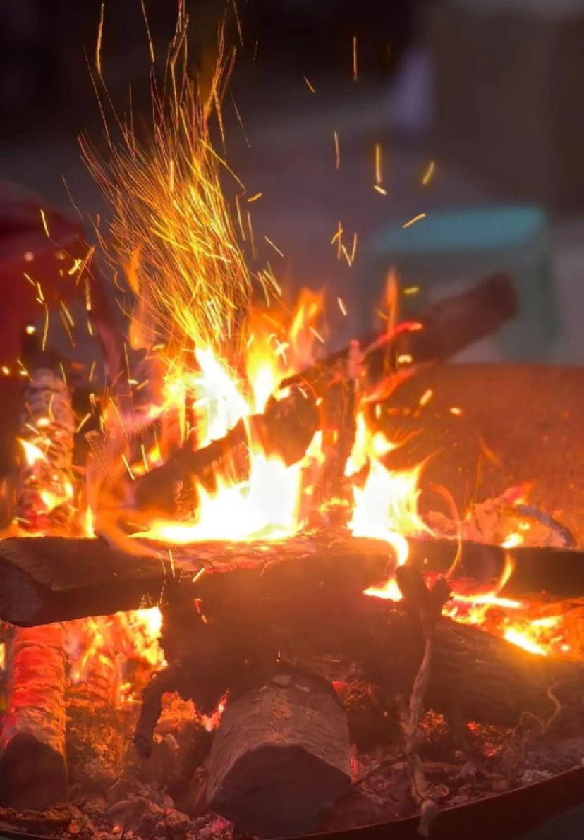 坐在柴火旁,感受那份温暖时光的温柔以待,为寂静的夜晚增添了几分惬意的影子。