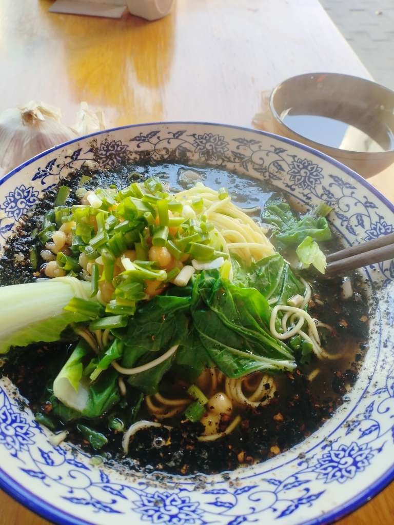 听说白马的胡辣壳面很到位。跑去尝了一下。还是可以。胡辣壳放很多,面吃完了,都还剩很多黑海椒。觉得还是碗杂好像更下口些。老板知道辣很了,还贴心的准备了一碗米酒汤,改口。你们去吃过没有?