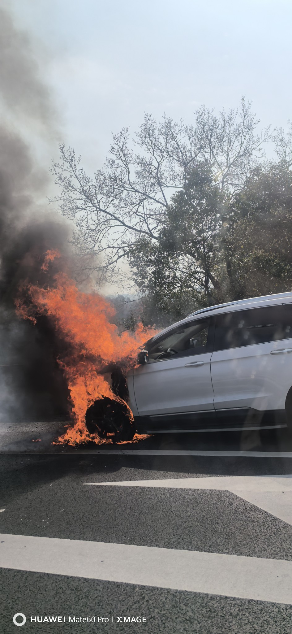 回武隆的路上,看到一辆自燃车,还好没有人员伤亡,从后备箱逃生了。春节出行,大家都要注意安全。