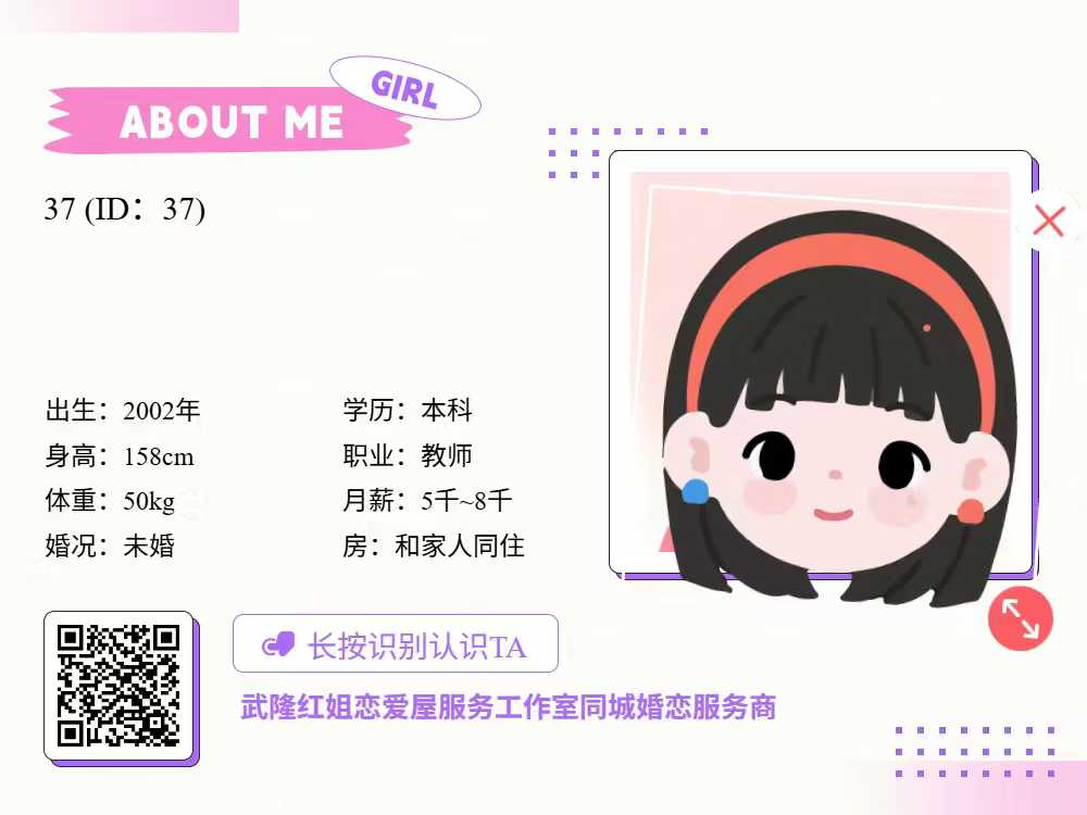 未婚,大专,98年,在武隆工作