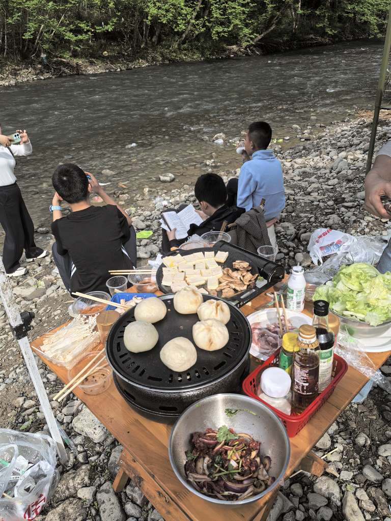 早上还在飘雨这会天气正好,已经六年级了小学期间的最后一次野炊活动,祝小朋友些玩得高兴